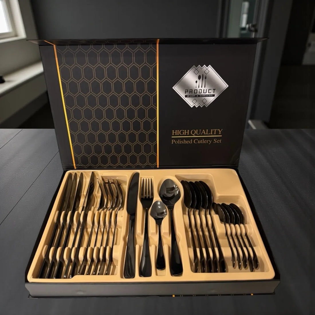 Bestikksett 24 deler – Sort Rustfritt Stål