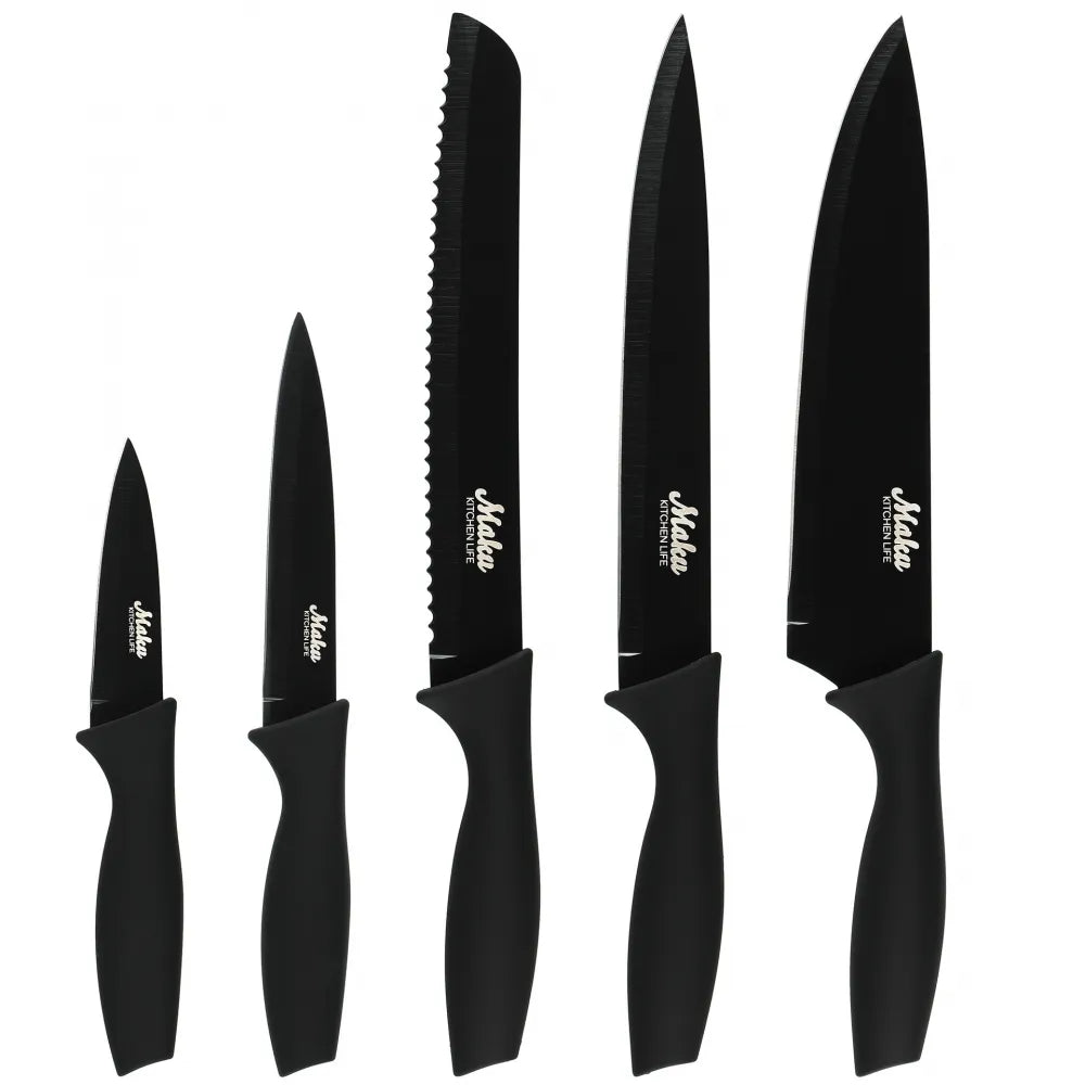 Svart knivsett 5 deler – kjøkkenkniver i rustfritt stål